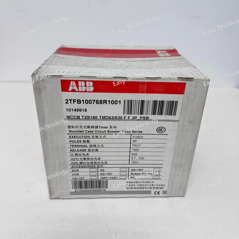 The ABB T2S160 TMD63/630 FF 3‑pole MCCB is a fixed (non‑withdrawable) low‑voltage circuit breaker designed to provide over‑current and short‑circuit protection for three‑phase electrical circuits. It features a thermal‑magnetic (TMD) trip unit with adjustable short‑circuit instantaneous setting. The breaker is intended for industrial or commercial installations, suitable for motor circuits, switchboards or general power‑distribution panels requiring configurable protection and high breaking capacity. Front‑terminal (“FF”) arrangement enables easy wiring and panel integration.