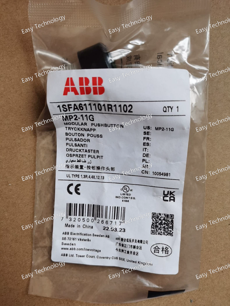 The ABB MP2‑11G is a maintained, illuminated pushbutton operator designed for industrial control panels and automation systems. It features a flush green actuator housed in a black plastic bezel and is part of ABB’s modular pilot‑device range. The unit is supplied without a contact block, allowing flexible configuration of contacts and holders to match specific circuit requirements. It delivers reliable, long‑life operation and is suitable for demanding environments.