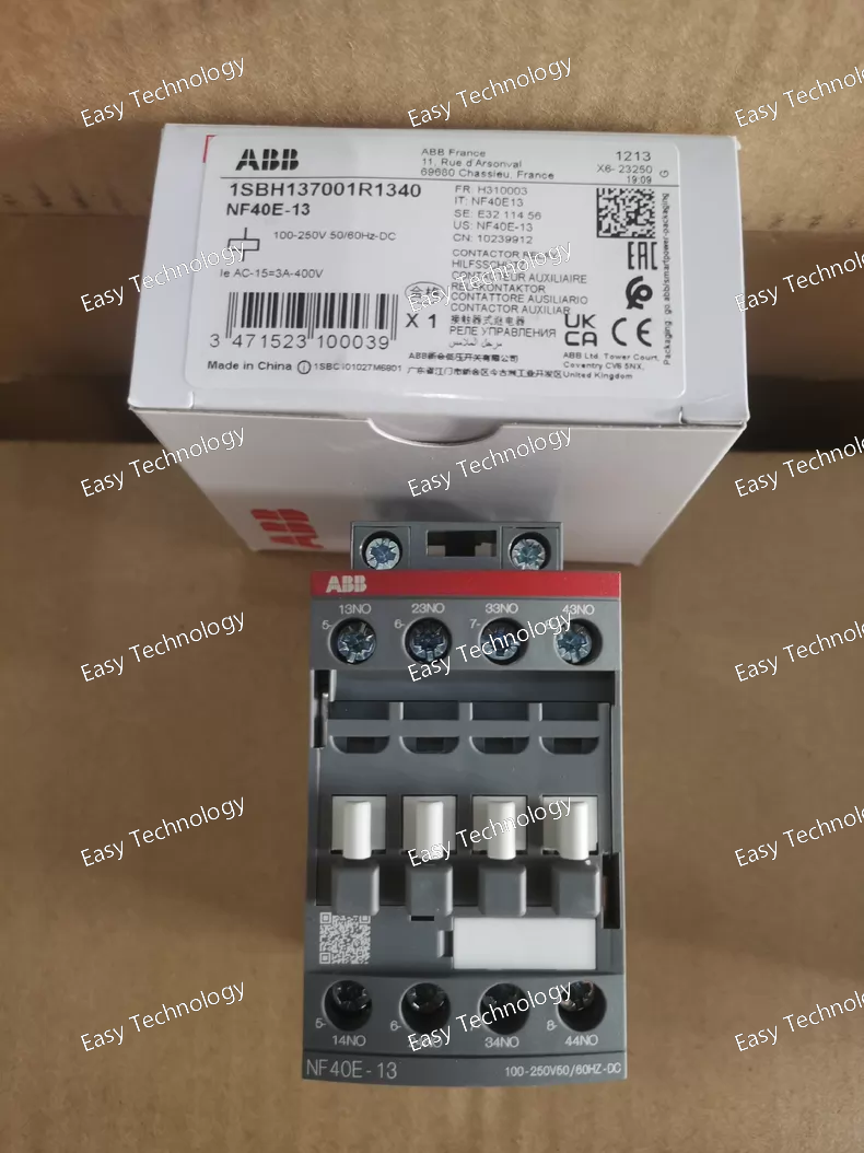 The ABB NF40E‑13 is a compact control/contactor relay designed for use in industrial and automation control circuits. It is part of ABB’s NF relay series and features a four‑pole switching configuration with four normally open (NO) contacts, making it suitable for controlling and switching auxiliary circuits, loads, and control signals. The relay supports a wide control voltage range that can accept both AC and DC inputs, reducing the need for separate coil variants. Its robust construction and screw‑terminal connections make it reliable for frequent switching operations in control panels, machinery control systems, and automation environments.