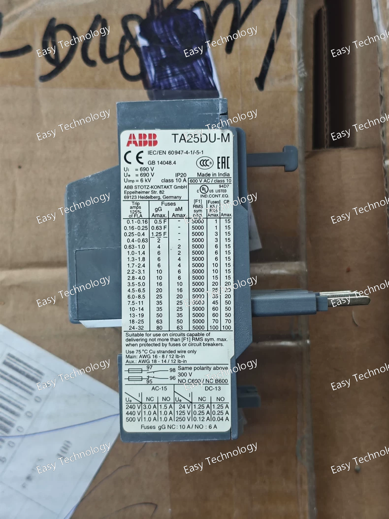 The ABB TA25DU-0.63M is an adjustable thermal overload relay designed to protect small three-phase motors against overload and phase failure. It provides reliable motor protection with a manual reset function, ambient temperature compensation, and a compact design suitable for integration with ABB contactors. It is commonly used in industrial motor starters and control panels for light to medium-duty applications.