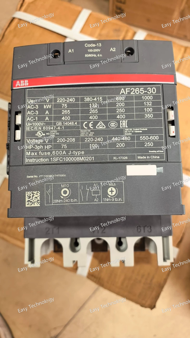 The ABB AF265‑30‑11‑13 is a 3‑phase, 3‑pole AC/DC contactor from ABB’s “AF” series, designed for switching heavy loads such as three‑phase motors or power circuits. It features a wide‑range electronic coil that accepts 100–250 V AC or 100–250 V DC control input, allowing one coil design to be used worldwide without coil change. The contactor includes 3 main normally‑open (NO) power contacts and a built‑in auxiliary contact block (1 NO + 1 NC), and supports a variety of add‑on auxiliary contacts and accessories. Its block‑type design, high switching capacity, built‑in surge suppression and robust construction make it suitable for industrial applications with high power demands and fluctuating supply conditions.