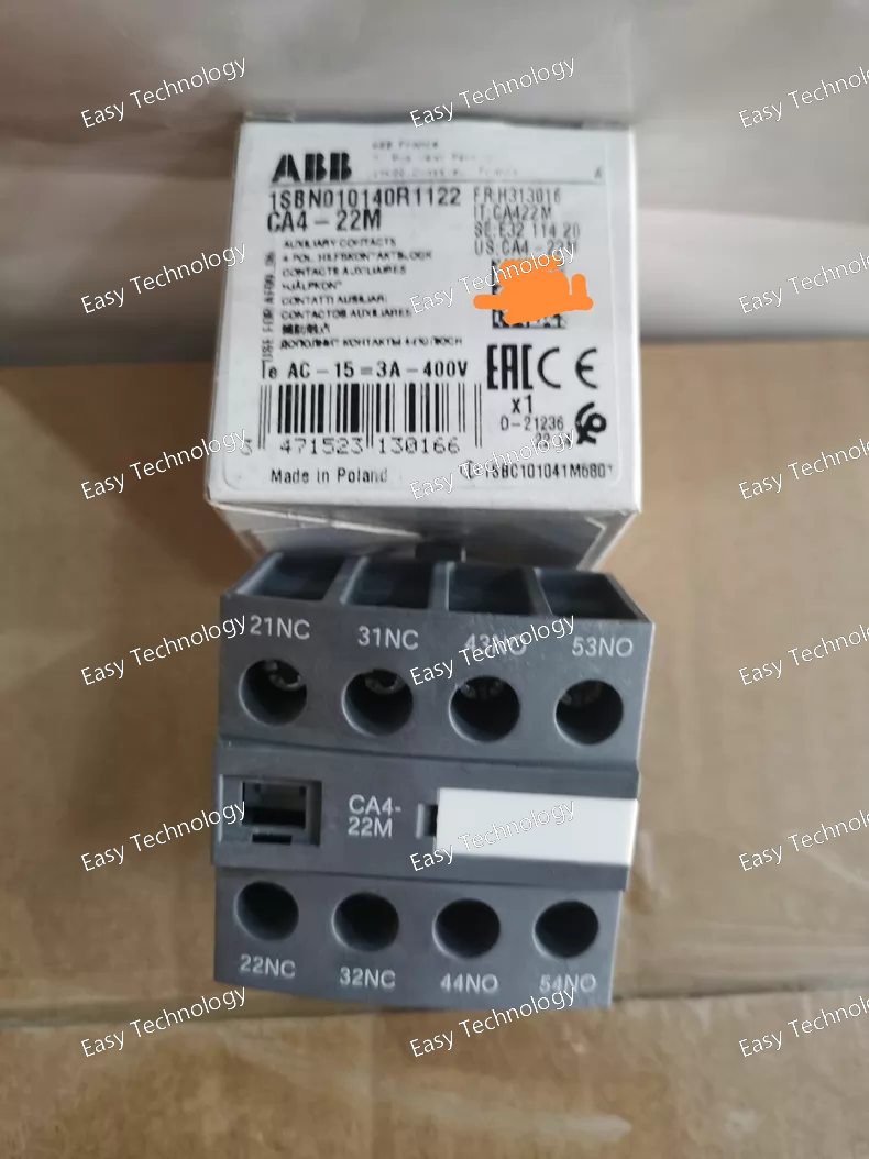 The ABB CA4‑22M is a 4‑pole auxiliary contact block designed to expand the control capabilities of ABB contactors. It is a front‑mounted accessory that provides additional switching contacts for auxiliary circuits in industrial automation and control applications. The block attaches to compatible ABB contactors to give feedback, indicator control, interlocking, or logic signaling functions.