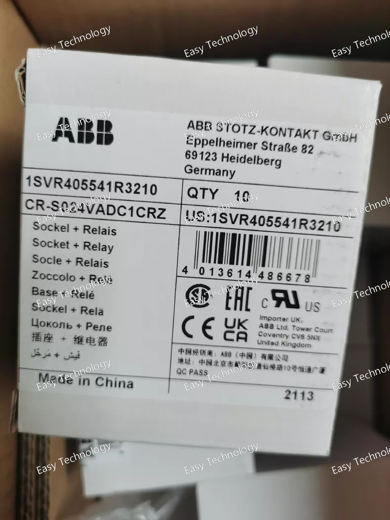 The ABB CR‑S024VADC1CRZ is a compact pluggable interface relay designed for use in industrial automation and control systems. It functions as an electrical isolation and switching device between control logic (such as PLC outputs or sensors) and field devices or load circuits. The relay accepts a 24 V AC/DC control signal and switches a separate circuit via its built‑in changeover contact. Its slim profile and DIN‑rail mounting make it suitable for space‑efficient panel installations.