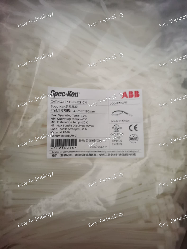 The ABB SKT190‑222‑CN is a nylon cable tie from ABB’s Spec‑Kon electrical installation product line. It is designed to secure and organize cables and wiring in electrical panels, control cabinets, and general industrial applications. The tie is made from durable nylon material, offering good mechanical strength and suitability for a wide range of cable bundling needs.