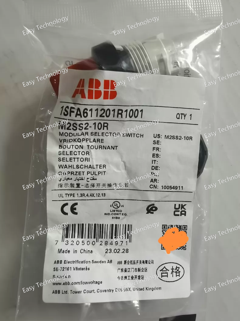 The ABB M2SS2‑10R is a modular 2‑position selector switch operator designed for industrial control panels and automation equipment. It features a short red handle, is non‑illuminated, and is supplied as the operator only (no contact block included). This compact selector is part of ABB’s modular pilot‑device range, engineered for durability and flexible configuration with modular contact blocks and accessories.
