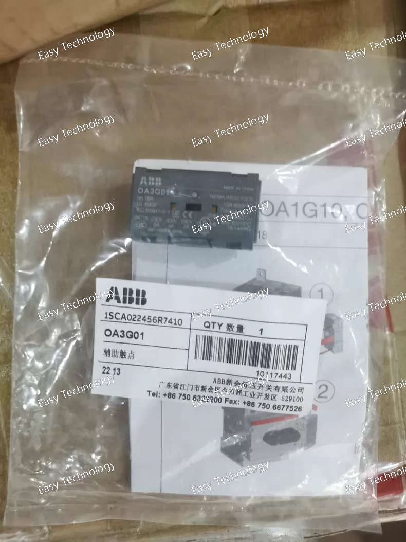 The ABB OA3G01 is a pluggable auxiliary contact block accessory used in electrical control systems. It provides an additional normally closed (NC) contact that can be added to compatible disconnect switches and load switches to signal and control auxiliary circuits. This auxiliary contact is designed to snap on easily and integrate with standard industrial switchgear components for expanded functionality.