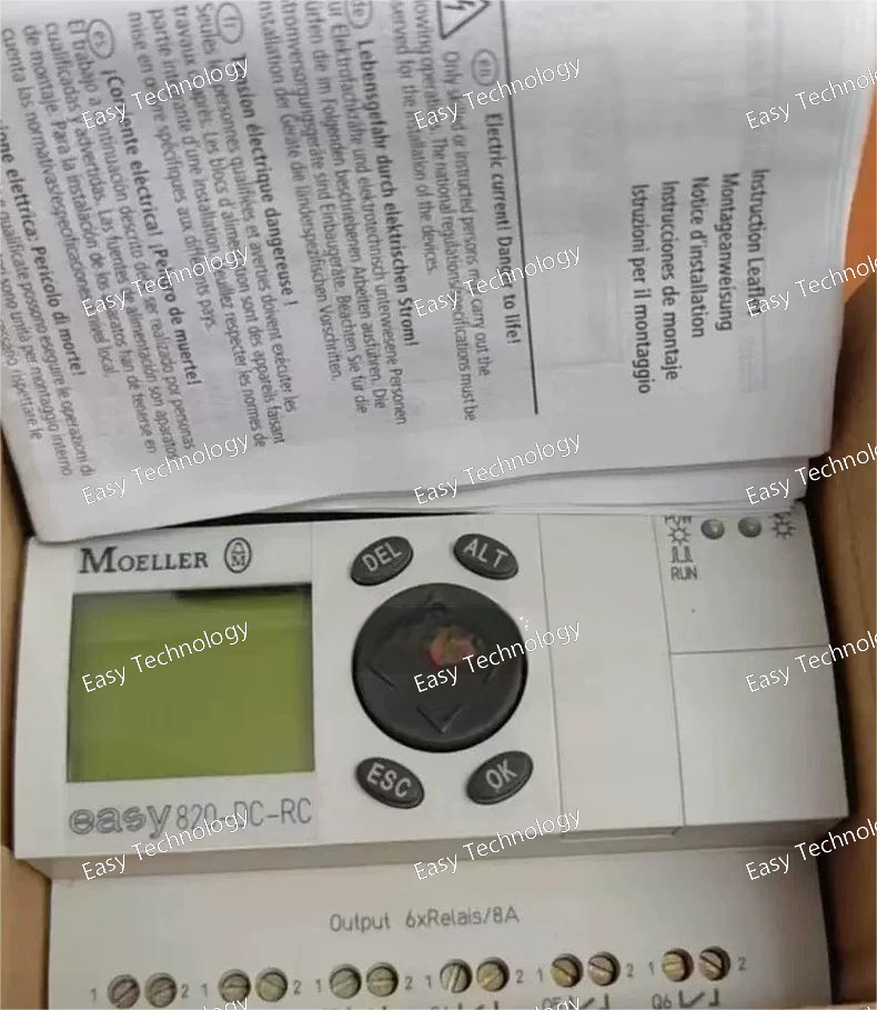 The Eaton EASY822-DC-RC is a member of the EASY800 series of compact, user-friendly, and powerful Programmable Logic Relays (PLRs), also known as micro-PLCs or control relays. This specific model is designed for 24V DC power supply and features an integrated Real-Time Clock (RTC).