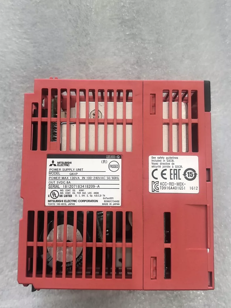 The Q61P is a 100-240V AC input power supply module for Mitsubishi's Q Series PLC, designed to provide stable DC power to the PLC system. This compact module delivers 5V DC and 24V DC outputs for CPU and I/O module operation.