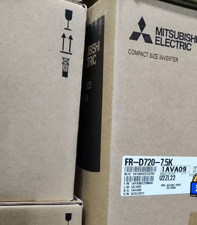 The Mitsubishi FR-D720-7.5K is a highly reliable variable frequency drive (VFD) designed for controlling 3-phase AC motors. Part of Mitsubishi's FR-D700 Series, this inverter drive offers energy-efficient control for various applications requiring motor speed and torque regulation. It is ideal for use in conveyors, pumps, fans, and HVAC systems, delivering reliable performance in both simple and complex industrial environments
