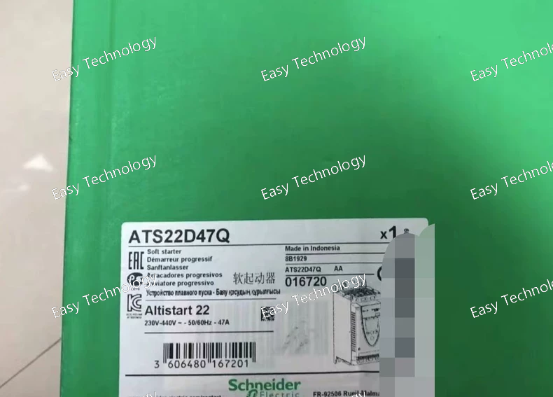 The Schneider Electric ATS22D47Q is a Soft Starter from the Altistart 22 series, designed for three-phase asynchronous motors. This model is rated for 47 A and is used to provide smooth acceleration and deceleration for motors, reducing mechanical stress on the driven equipment and limiting inrush current, thereby protecting the electrical supply network.