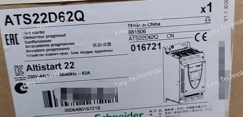 The Schneider Electric ATS22D62Q is a Soft Starter from the Altistart 22 series, designed for three-phase asynchronous motors. This model is rated for 62 A and provides controlled acceleration and deceleration to reduce mechanical stress on driven equipment and limit inrush current.