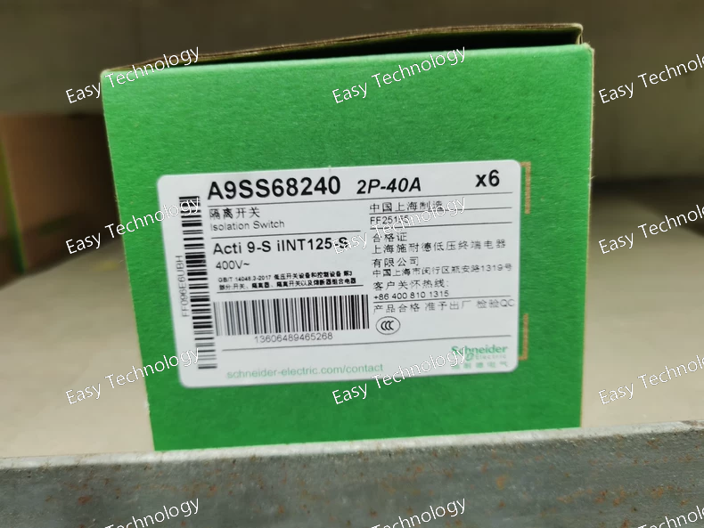 The Schneider Electric A9S68240 is an Acti 9 iINT125 series switch disconnector (load break switch) . It is a 2-pole (2P) device with a rated current of 40 A and a rated operational voltage of 415 V AC . This switch is designed for control (opening and closing load circuits) and isolation functions, providing visible contact gaps for safe isolation