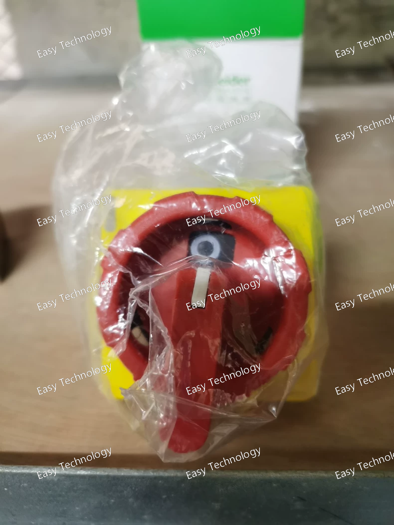 The Schneider Electric KCF1YZC is a rotary handle operator from the TeSys Vario series designed for use with load break switches and disconnect switches . It is a door-mounting operating handle intended for emergency stop applications, featuring a red handle and a yellow front plate