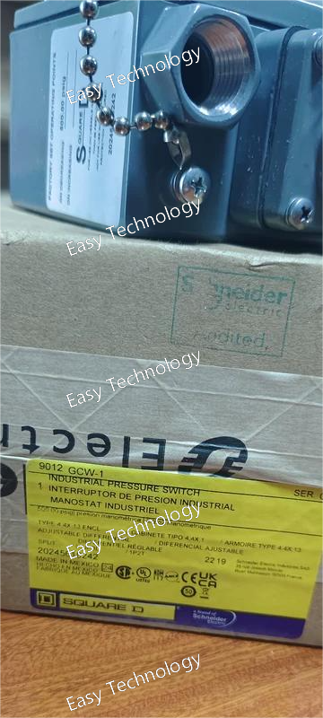 The Schneider Electric 9012GAW-4 is an industrial pressure switch from the 9012 Series . It is designed for monitoring and controlling pressure in industrial applications involving air, water, oil, and other non-corrosive fluids and gases .