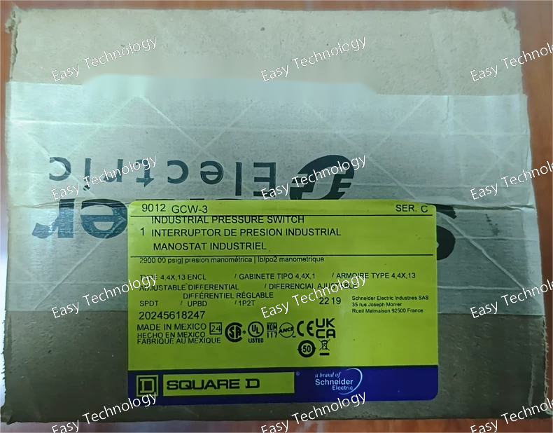 The Schneider Electric 9012GCW-3 is an industrial pressure switch from the 9012 Series . It is designed for monitoring and controlling pressure in industrial applications involving air, water, oil, and other non-corrosive fluids and gases .