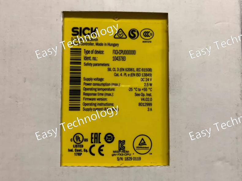 The SICK FX3-CPU000000 is a central processing unit (CPU) module for the SICK FX3 series of modular safety controllers. It serves as the core logic unit for configuring and executing safety functions, enabling the integration of safety I/O modules to monitor devices like E-stops, light curtains, and interlock switches in industrial automation systems.