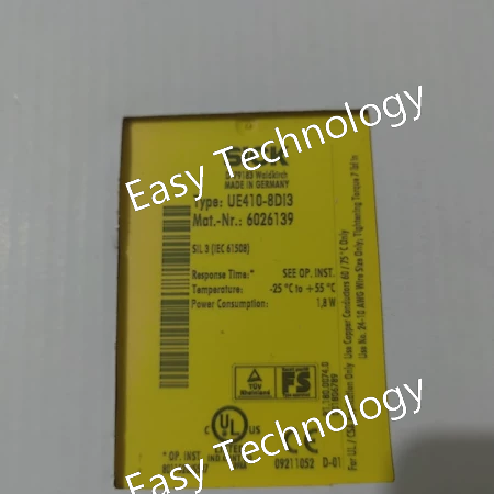 The SICK UE410-8DI3 is a modular safety relay designed as a configurable safety monitor. It processes signals from safety devices (like E-Stops, light curtains, and interlock switches) and provides a safe, redundant output to control a machine's power contactor, ensuring compliance with safety standards