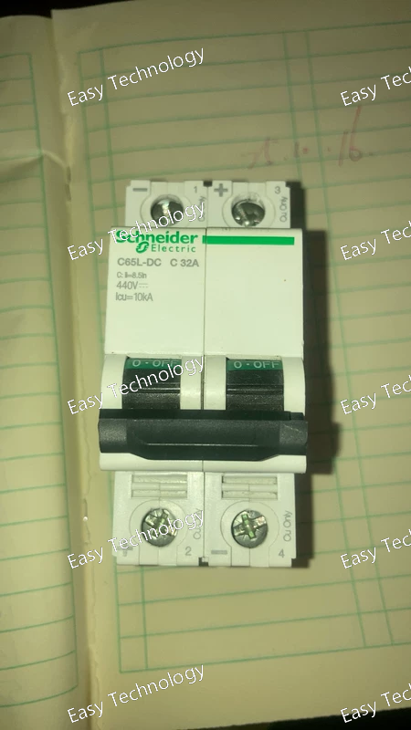 The Schneider Electric C65L‑DC C32A 2P is a miniature circuit breaker (MCB) designed for DC power applications in industrial, commercial, and renewable energy systems. It provides reliable overcurrent and short‑circuit protection for two‑pole DC circuits up to 32 A. This breaker features a thermal‑magnetic trip mechanism and compact design for easy installation in distribution boards and control panels. It is suitable for protecting DC loads such as solar PV strings, battery systems, DC motor circuits, and other low‑voltage DC installations requiring high safety and dependable operation.