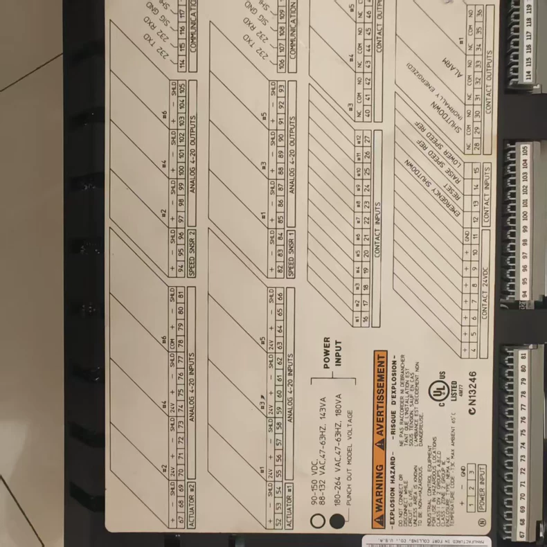 The Woodward 8272-464 is a digital control interface module designed for engine and turbine management systems, providing critical signal processing and I/O functions for Woodward governors (e.g., 2301/723 series).